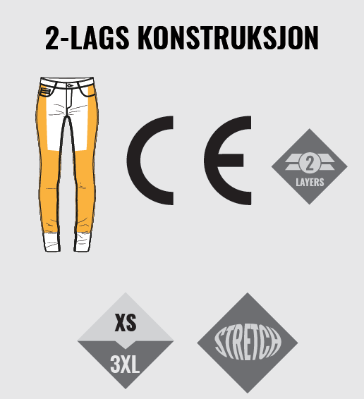 • 2-lags konstruksjon : pustende og ventilert stretch tekstil med liner av DuPont™ Kevlar® aramid fibre DuPont™