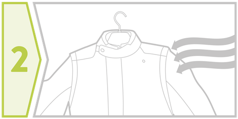 Hvis du har vært ute i regn lar du fuktige plagg tørke langsomt i romtemperatur. Skinnklær bør ikke tørkes i for høy varme. Tørk dem aldri i tørkeskap eller på elementer, for det gjør plaggene stive og harde.