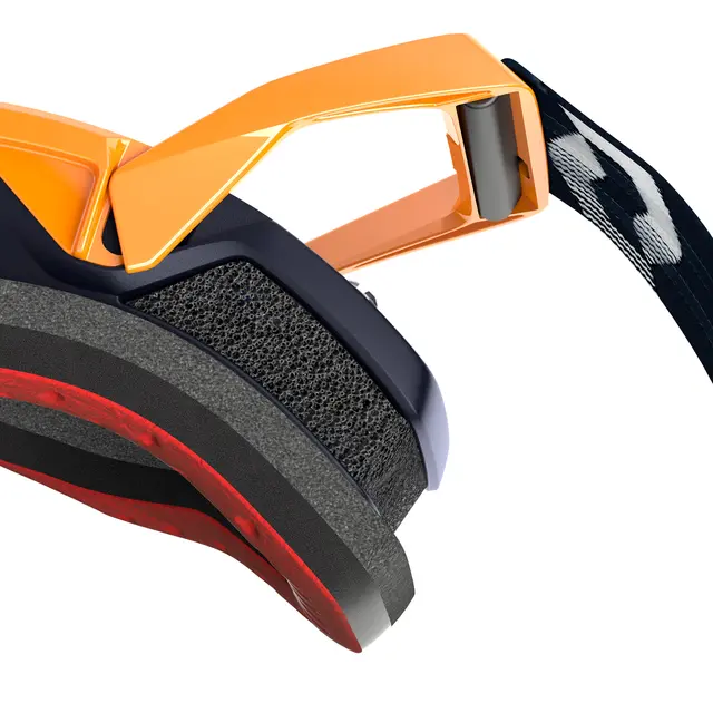 De to bevegelige utriggerne gjør at brillen kan tilpasses alle typer hjelmer. Trykket skapt av brillen på ansiktet gir deg en god forsegling.