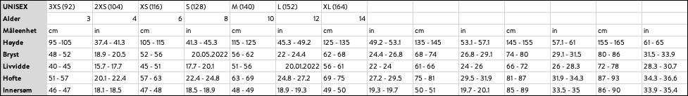 Størrelse: 2XS-XL (104-164)